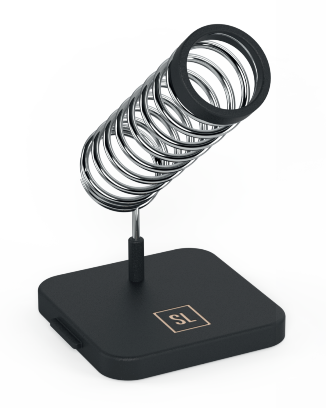 A safe, stable resting place for your soldering iron between tasks. This streamlined holder features a robust magnetic base that secures firmly to the Solderlux main base plate, preventing unwanted movement during delicate work.